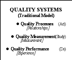 do of Dr. Deming's Aim-Plan-Do-Study-Act cycle), quality measurement (the study